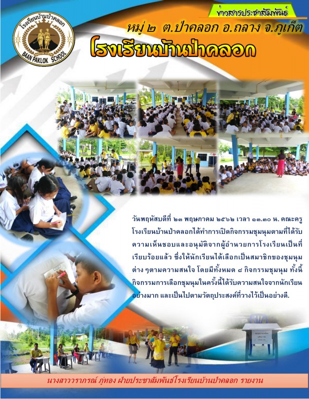 กิจกรรมเลือกชุมนุมตามความสนใจของนักเรียนโรงเรียนบ้านป่าคลอก